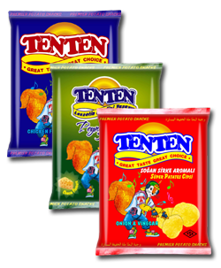 Kıbrıs'ta üretilen dünyaca ünlü patatesten değişik aromalarda tırtıklı olarak 20-40 ve 100 gr lık ambalajlarda üretilmektedir. TSE standartlarına uygun, üzerindeki aromalarda farklı tadlar sunan ve kıbrıs patatesinin kendine özgü rayhasıyla ayrıcalıklı olan Ten Ten patates cipsi, Kuzey Kıbrısta yerli üretim içerisinde farklı bir yer almış durumda.